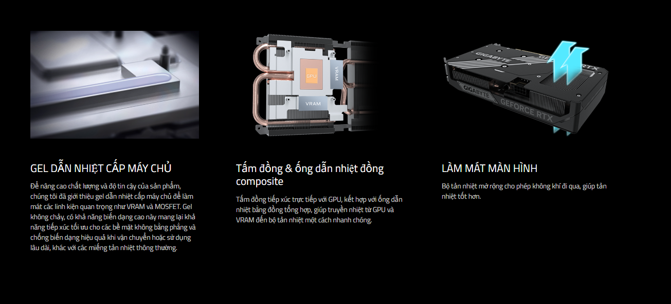 Tản nhiệt WINDFORCE hiệu quả: Mặc dù có thiết kế nhỏ gọn, card vẫn được trang bị hệ thống tản nhiệt WINDFORCE hiệu quả, giúp duy trì nhiệt độ ổn định ngay cả khi hoạt động ở mức tải cao và trong thời gian dài. Điều này đảm bảo card hoạt động bền bỉ, kéo dài tuổi thọ và giữ hiệu suất tối đa.