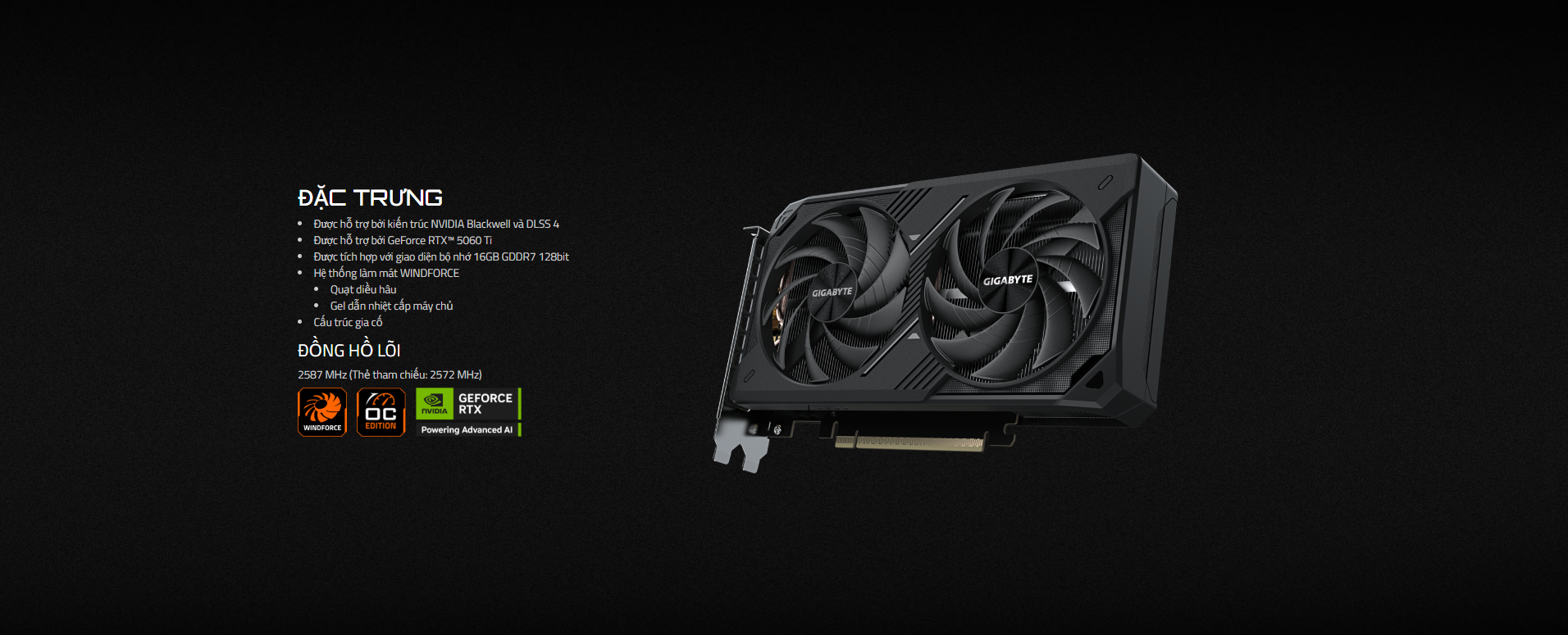 Gigabyte GeForce RTX™ 5060 Ti WINDFORCE MAX OC: Sức mạnh gaming tối thượng trong một thiết kế siêu nhỏ. Tận hưởng hiệu năng ép xung, không giới hạn không gian. - BP STORE