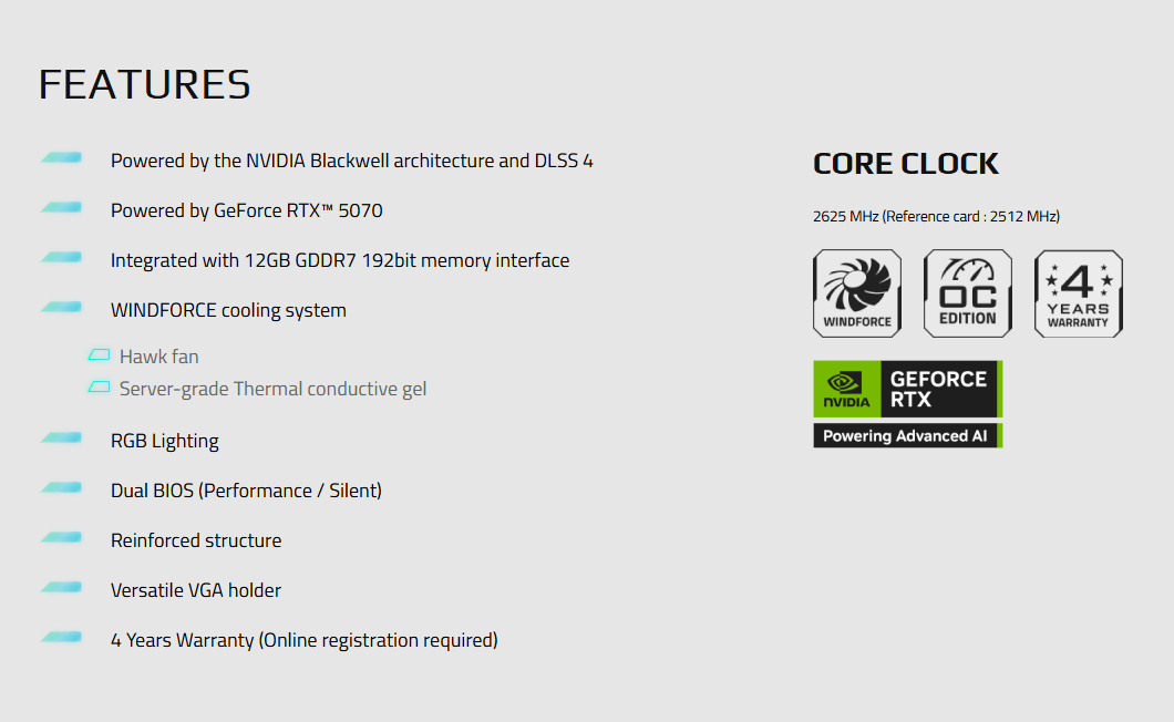 Model: GIGABYTE GeForce RTX 5070 AERO OC 12G (GV-N5070AERO-OC-12GD)