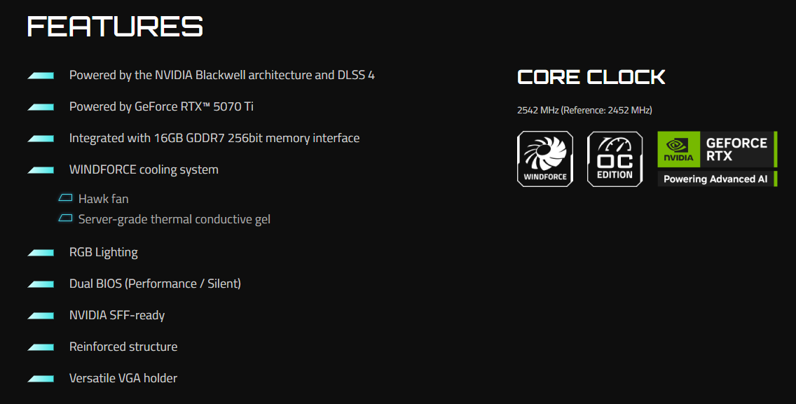 Model: GIGABYTE GeForce RTX 5070 Ti EAGLE OC SFF 16G (GV-N507TEAGLE-OC-16GD)