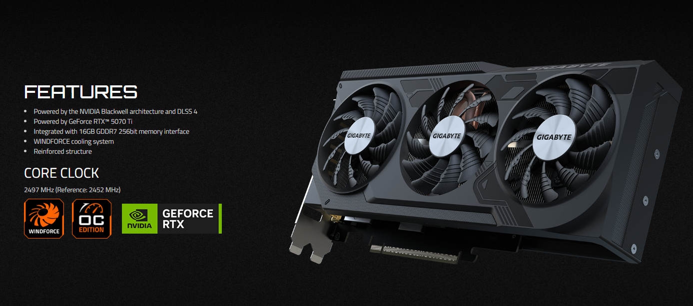 Model: GIGABYTE GeForce RTX 5070 Ti WINDFORCE OC V2 16G (GV-N507TWF3OCV2-16GD)