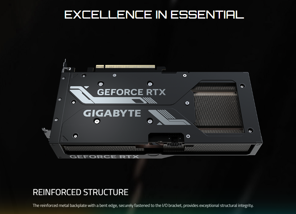 RTX 5070 Ti WINDFORCE OC V2 sở hữu thiết kế chuyên nghiệp với backplate kim loại chắc chắn. Card sử dụng các linh kiện chất lượng cao (Ultra Durable Components) để đảm bảo nguồn điện ổn định và độ bền bỉ tuyệt đối cho hoạt động tốc độ cao và OC liên tục.