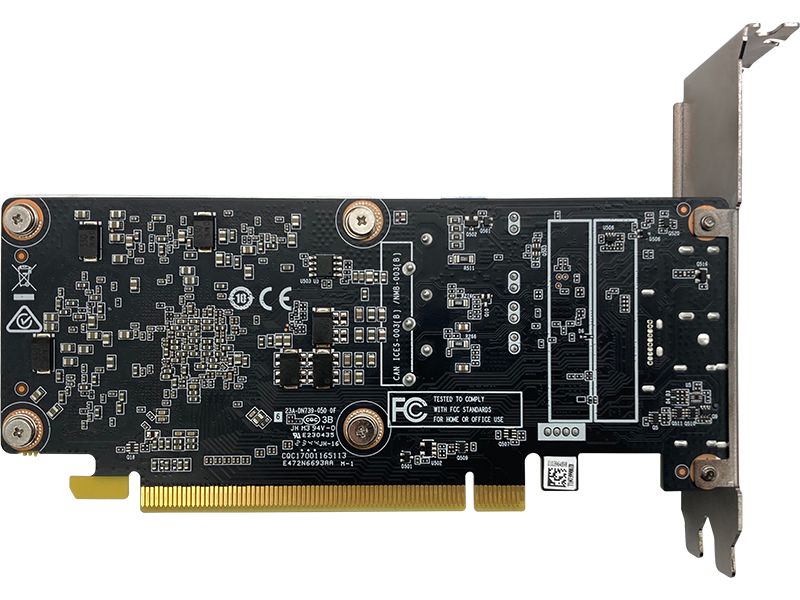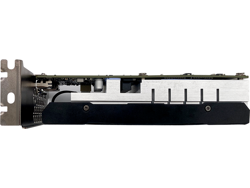 Tản Nhiệt Hiệu Quả Với Twin Cooler: Mặc dù nhỏ gọn, card vẫn sử dụng thiết kế tản nhiệt Heatsink với Twin Cooler (quạt kép). Hệ thống quạt này đảm bảo khả năng làm mát hiệu quả, giữ cho GPU hoạt động ở nhiệt độ tối ưu (Maximum GPU Temperature 93℃), ngay cả khi tải nặng trong không gian chật hẹp.