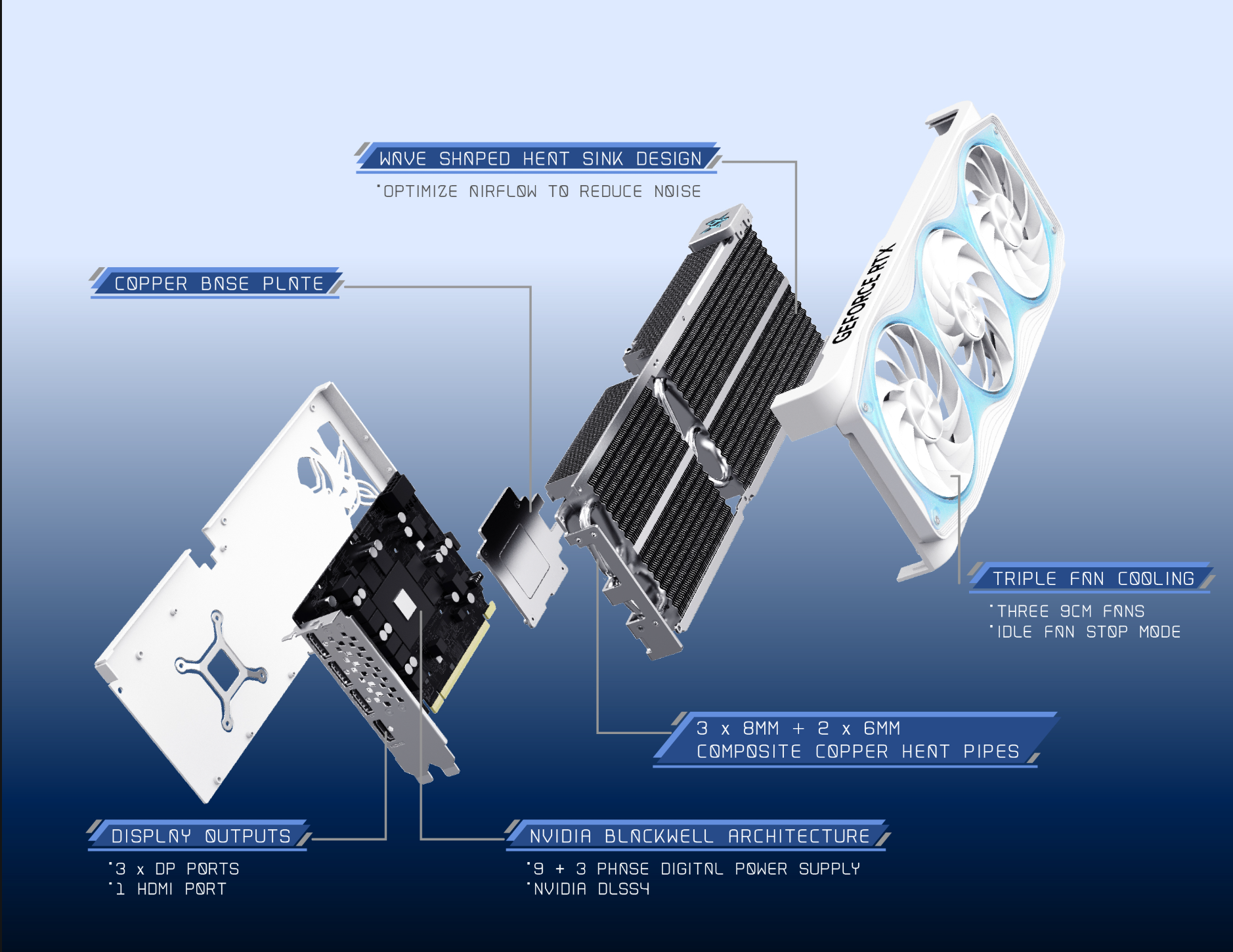 Bộ nhớ 16GB GDDR7 dung lượng lớn và siêu tốc: Với 16GB bộ nhớ GDDR7 và tốc độ 28.0Gbps, chiếc card này cung cấp băng thông bộ nhớ cực lớn, cho phép xử lý hiệu quả các tác vụ đòi hỏi nhiều VRAM. Dung lượng 16GB rất lý tưởng cho gaming ở độ phân giải 4K, các dự án thiết kế 3D phức tạp, chỉnh sửa video 8K và các ứng dụng AI/Machine Learning.