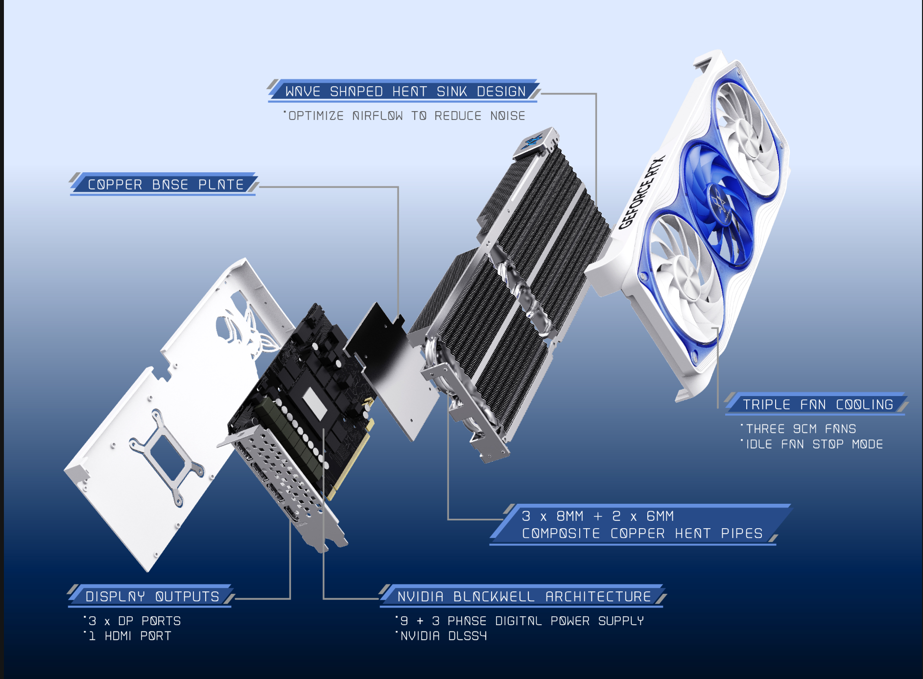 Thiết kế tản nhiệt 3 quạt hiệu quả: Với thiết kế tản nhiệt sử dụng Heatsink và Triple Cooler (3 quạt), card có khả năng làm mát cực kỳ hiệu quả. Chức năng An-stop function at idle state giúp quạt ngừng quay khi tải thấp, giảm tiếng ồn và tiết kiệm năng lượng. Nhiệt độ GPU tối đa chỉ ở mức 85℃, đảm bảo card hoạt động bền bỉ, kéo dài tuổi thọ và giữ hiệu suất tối đa.