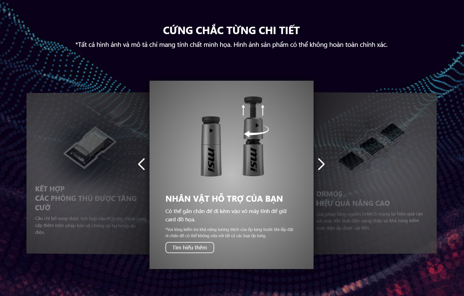 Với Kích thước card 300 x 125 x 44 mm và tên gọi GAMING TRIO, card được trang bị hệ thống tản nhiệt 3 quạt cao cấp của MSI. Thiết kế này đảm bảo khả năng làm mát vượt trội, duy trì nhiệt độ ổn định ngay cả khi hoạt động ở mức tải cao và trong thời gian dài, giúp kéo dài tuổi thọ và giữ hiệu suất tối đa, đồng thời giảm thiểu tiếng ồn.
