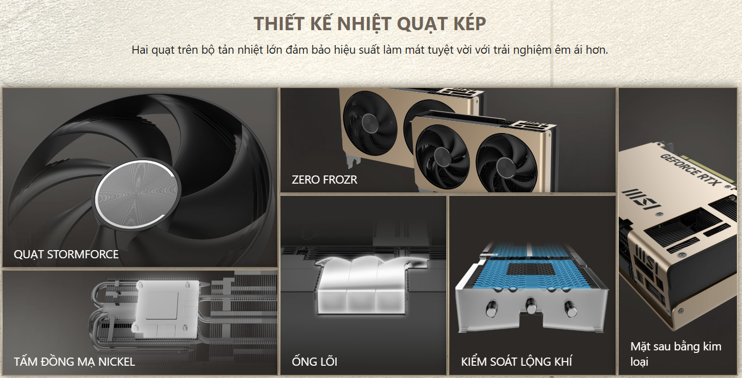 Tản nhiệt hiệu quả với 2 quạt: Mặc dù có thiết kế nhỏ gọn, card vẫn được trang bị hệ thống tản nhiệt hiệu quả với 2 quạt, giúp duy trì nhiệt độ ổn định ngay cả khi hoạt động ở mức tải cao và trong thời gian dài. Điều này đảm bảo card hoạt động bền bỉ, kéo dài tuổi thọ và giữ hiệu suất tối đa, đồng thời giảm thiểu tiếng ồn. Trọng lượng 652g cũng phản ánh sự tối ưu trong thiết kế.