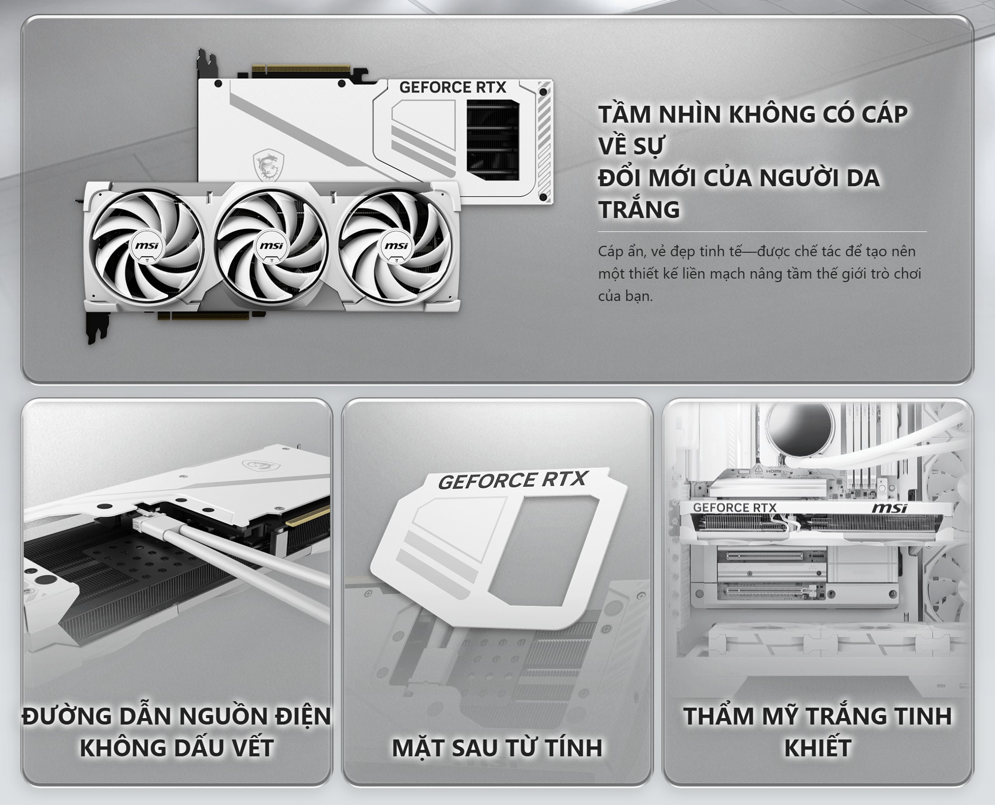Kết nối chuẩn tương lai: Card sử dụng giao diện PCI Express® Gen 5, cung cấp băng thông siêu nhanh. Cổng xuất hình hỗ trợ và , với khả năng hiển thị lên tới và hỗ trợ G-SYNC®.