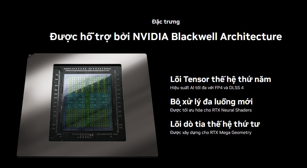 Công nghệ và kết nối đột phá: Card hỗ trợ PCIe Gen 5, tăng gấp đôi băng thông so với PCIe Gen 4, cải thiện tốc độ truyền dữ liệu. Với DisplayPort 2.1, card có thể xuất hình ảnh lên tới 8K @ 240Hz hoặc 16K @ 60Hz, đảm bảo chất lượng hình ảnh và màu sắc cao nhất cho các tác vụ thiết kế và chỉnh sửa video. Công nghệ DLSS 4 với tính năng Multi Frame Generation giúp tăng tốc độ khung hình và chất lượng hình ảnh trong các ứng dụng hỗ trợ.
