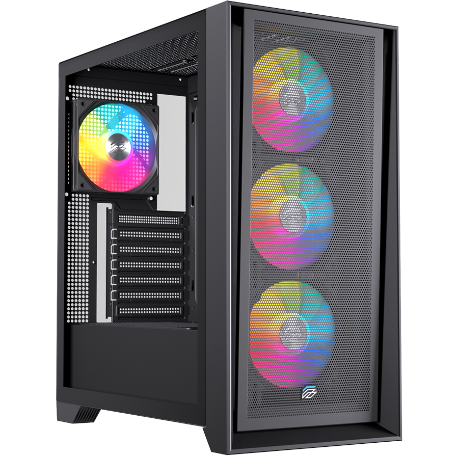 - Case có không gian rộng rãi cho card đồ họa dài tối đa 350mm (hoặc 325mm tùy thuộc vào vị trí lắp đặt quạt trước) và tản nhiệt CPU cao tối đa 185mm, cho phép lắp đặt các linh kiện hiệu năng cao.