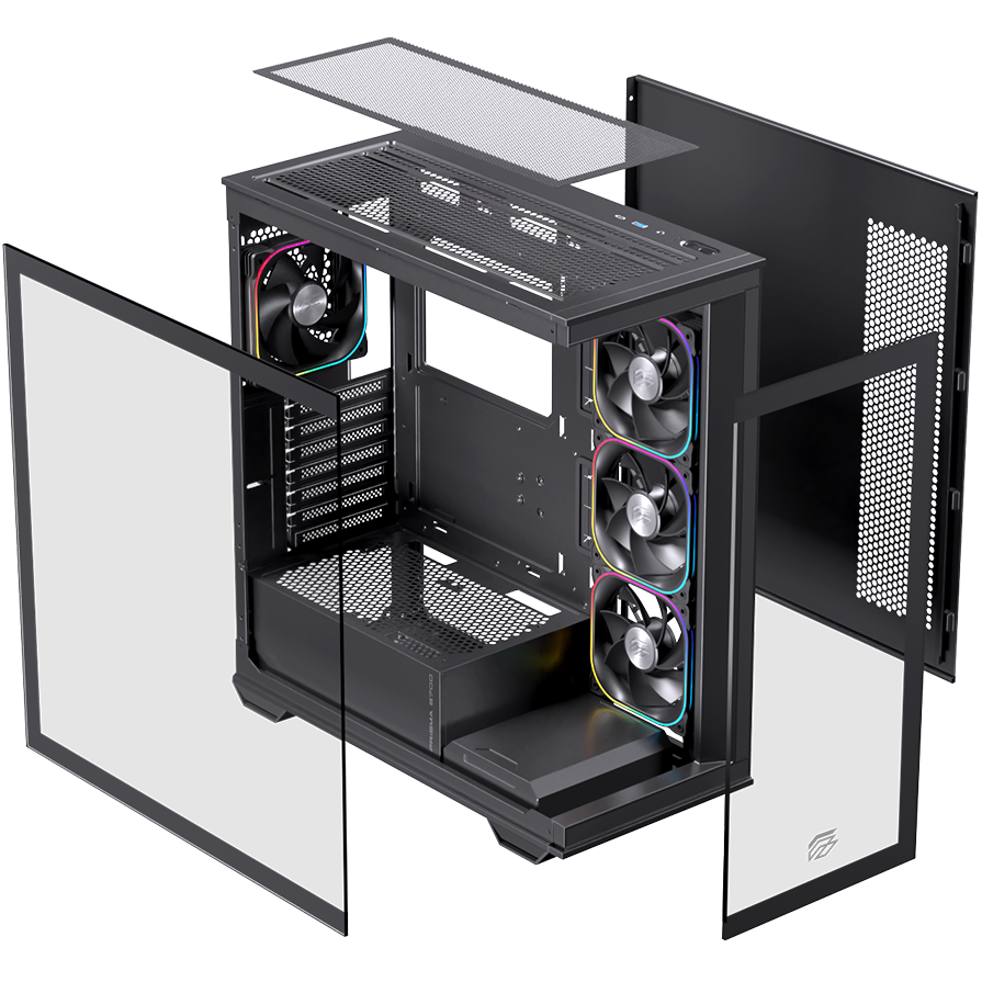 - Mặt bên được trang bị kính cường lực trong suốt với thiết kế trượt phía sau, giúp việc tháo lắp và trưng bày các linh kiện bên trong trở nên thuận tiện và đẹp mắt.