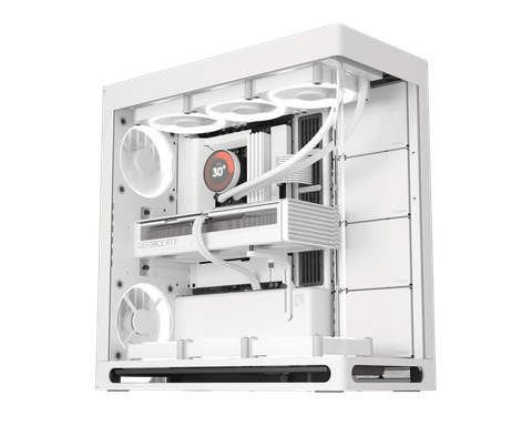 - Chiều rộng: Tối đa 195 mm. Hỗ trợ chiều rộng GPU phụ thuộc vào kích thước bộ làm mát CPU. Đầu nối PCIe từ tâm CPU đến cạnh card đồ họa: ~199mm (thay đổi tùy theo bo mạch chủ). Khuyến nghị làm mát bằng chất lỏng. - Hỗ trợ quạt: Số lượng tối đa: 11