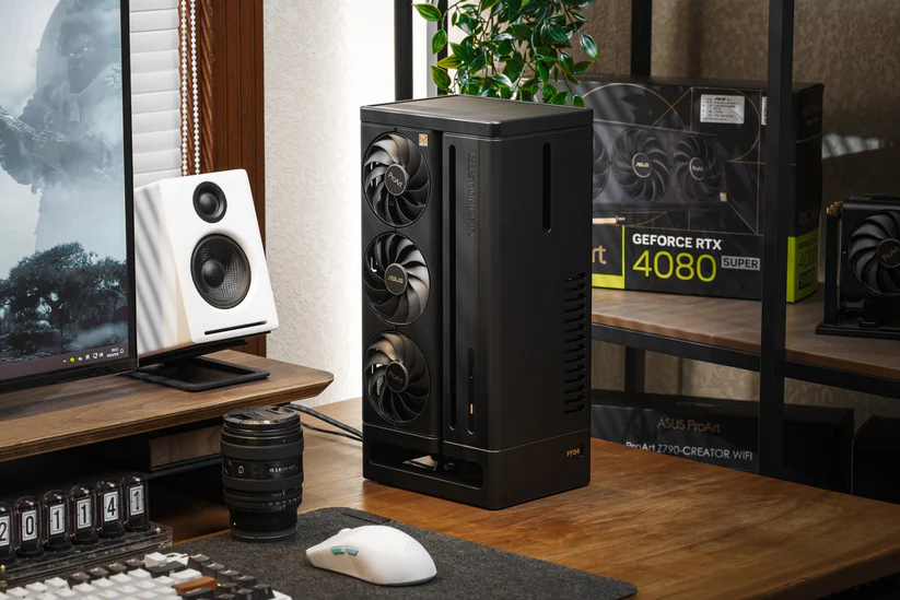 Thiết kế độc đáo, chất liệu cao cấp: FF04 ProArt được chế tác từ nhôm CNC nguyên khối, mang lại vẻ ngoài cao cấp và độ bền vượt trội. Thiết kế mặt lưới cắt độc đáo không chỉ tạo điểm nhấn về thẩm mỹ mà còn giúp tối ưu luồng khí. Kích thước nhỏ gọn 183x145x370mm và trọng lượng 7,5kg giúp case dễ dàng đặt trên bàn làm việc, tiết kiệm không gian.
