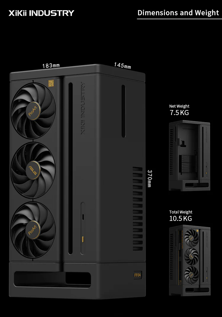 Case XIKII INDUSTRY FF04 ProArt là một chiếc case ITX cao cấp, được chế tác từ nhôm CNC nguyên khối với thiết kế tinh xảo và độc đáo. Sản phẩm được tạo ra dành riêng cho những người đam mê công nghệ và yêu thích sự nhỏ gọn, mạnh mẽ, đồng thời muốn trưng bày vẻ đẹp của các linh kiện ProArt và ROG Loki. FF04 ProArt không chỉ là một chiếc case, mà còn là một tác phẩm nghệ thuật, mang đến sự sang trọng và khác biệt cho không gian làm việc của bạn.
