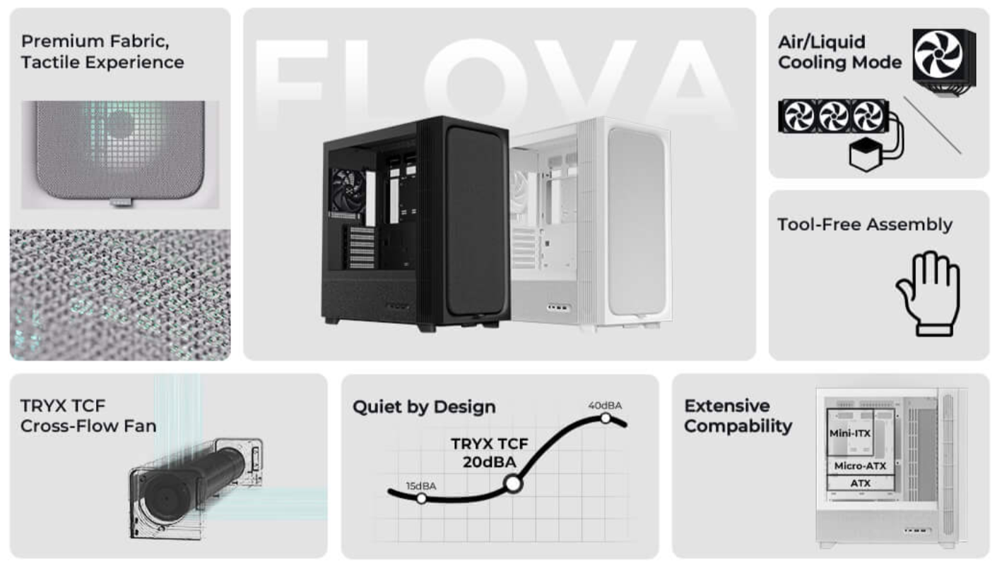 Dù là chuẩn Mid-Tower, Vỏ Case TRYX FLOVA F50 cung cấp không gian nội thất cực kỳ thoải mái. Bạn có thể dễ dàng lắp đặt các dòng Card đồ họa (VGA) có kích thước lớn, chiều dài khủng và các bộ tản nhiệt khí cao cấp. Khả năng hỗ trợ mainboard đa dạng từ Mini-ITX đến ATX giúp người dùng tự do xây dựng cấu hình theo ý muốn.