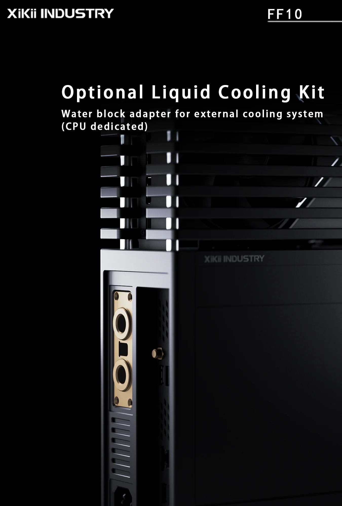Mặt trước case tích hợp bảng mạch I/O mở rộng (Expansion Circuit-type) với các nút nguồn/khởi động lại và cổng USB tiện lợi. Đặc biệt, FF10 cung cấp tùy chọn Liquid Cooling Kit (mua thêm) – một bộ chuyển đổi water block chuyên dụng cho CPU, cho phép kết nối với hệ thống tản nhiệt nước bên ngoài (external cooling system), phá vỡ giới hạn nhiệt độ của các case SFF truyền thống.